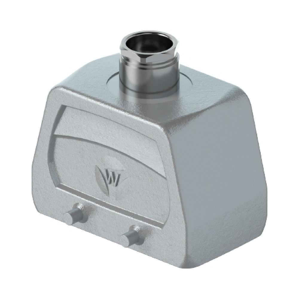 Крышка разъема на кабель, типоразмер 10B, без уплотнителя, 1 отверстие с резьбой для кабельных вводов M20x1,5, с верхним расположением, без защелок (упоры для двух защелок), материал корпуса: алюминиевый сплав