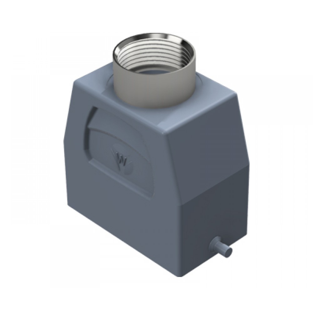 Крышка разъема на кабель, типоразмер 10B, высокое исполнение, без уплотнителя, 1 отверстие с резьбой для кабельных вводов M32x1,5, с резьбовым удлинителем, с верхним расположением, без защелки (упоры под одну защелку), материал корпуса: алюминиевый сплав