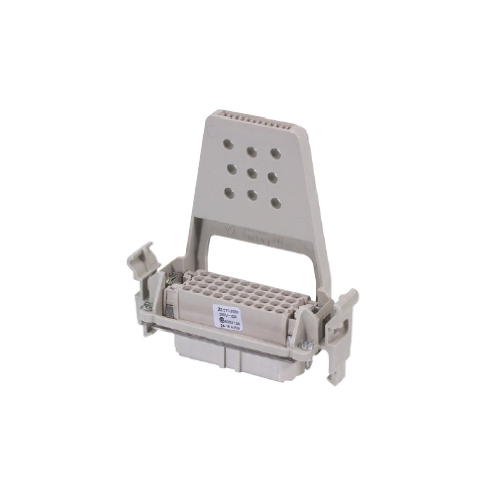 Розеточная контактная вставка, обжимная фиксация, 40 полюсов + PE, типоразмер 16B, 250V, 10A, (обжимные контакты поставляются отдельно), с защелками, с разгрузкой от натяжения, с монтажной рамкой