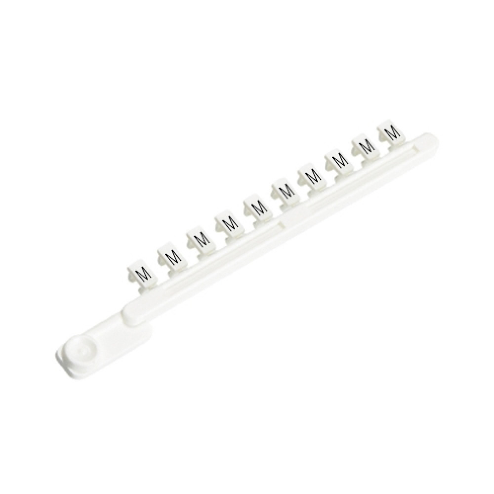 Гребенка составных шильдиков, боковая / верхняя, 10 шильдиков, нанесенные символы: M,M, ... ,M цвет: белый