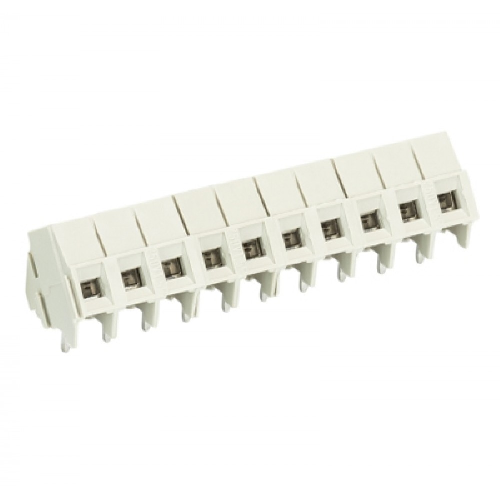 Клемма Wiecon 8134 / 10, Клемма, подвод кабеля 35 град., на плату, шаг: 5.0 мм, 10 полюсов, фиксация провода винтовая, исполнение: с маркировкой, 300V, 10A, цвет: серый