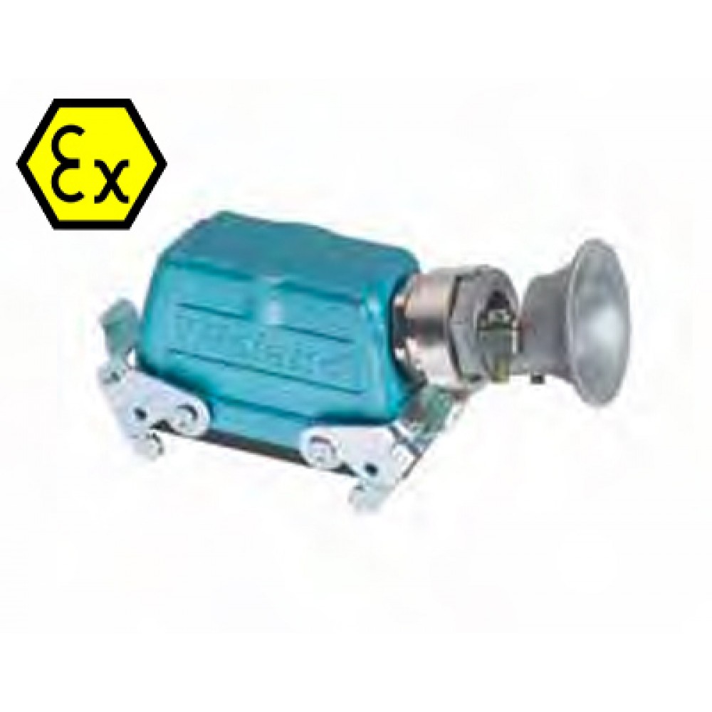 Крышка разъема Ex EX GOT GS16 M32 09IA Z4, Крышка разъема на кабель, типоразмер 16B, взрывозащита, с уплотнителем, 1 кабельный ввод M32x1,5, с разгрузкой на изгиб, IP54, с боковым расположением, с двумя защелками, материал корпуса: цинковый сплав