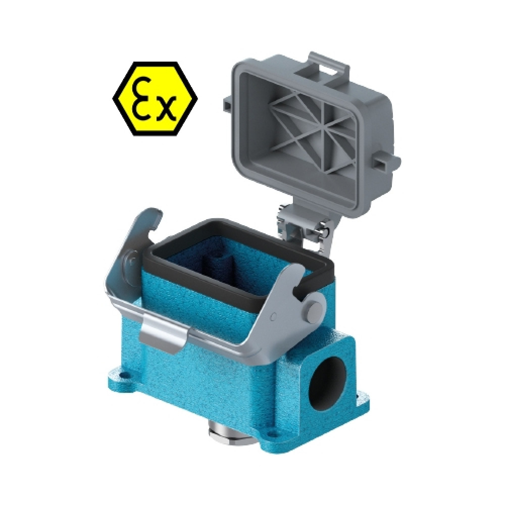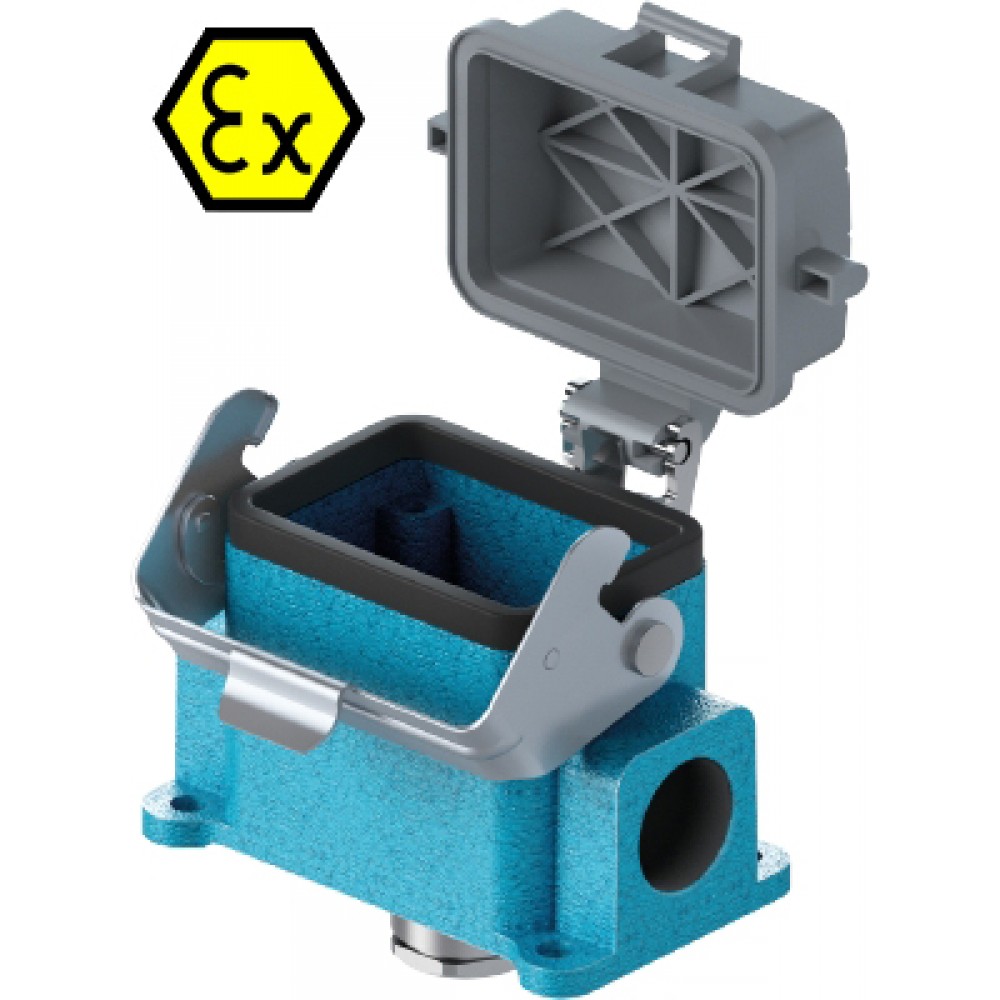 Основание разъема на панель, закрытое, типоразмер 6B, взрывозащита, с уплотнителем, 1 кабельный ввод M25x1,5, IP54, с нижним расположением, с одной защелкой, с пластиковой защитной крышкой, материал корпуса: цинковый сплав