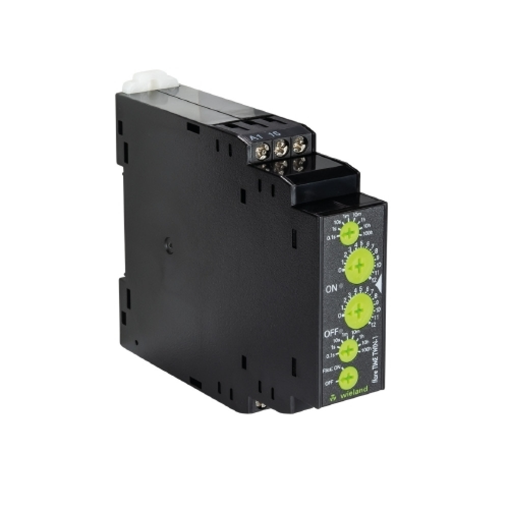 Реле времени flarу TIME TWIN-1 Pulserelay, Многофункциональное многодиапазонное реле времени, с циклом повторения, вход. напр.: 20,4 … 264 V AC/DC, с задержкой влючения/выключения, регулировка времени включения и выключения, 1 переключающий контакт, коммутируемый ток: 5А, серия flare TIME
