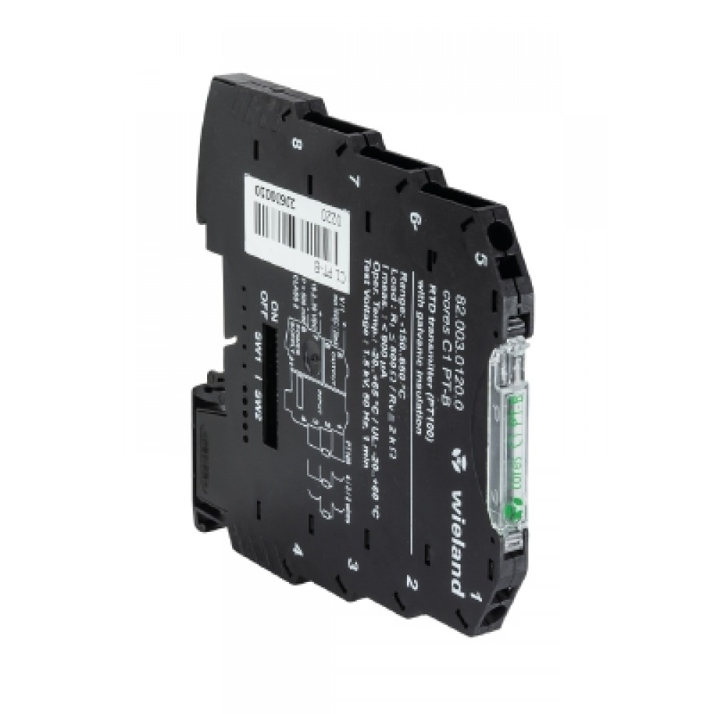 Адаптер термосопротивления cores C1 PT-B, Разделительный усилитель с гальванической развязкой трех цепей, входной диапазон (регулируемый): PT100 с 2-, 3- или 4-проводным подключением, -150… +650 ° С; выходной диапазон (регулируемый): 0/1 ... 5 V DC или 0 ... 10 V; 10 ... 0 V DC; 0/4 ... 20 mA DC