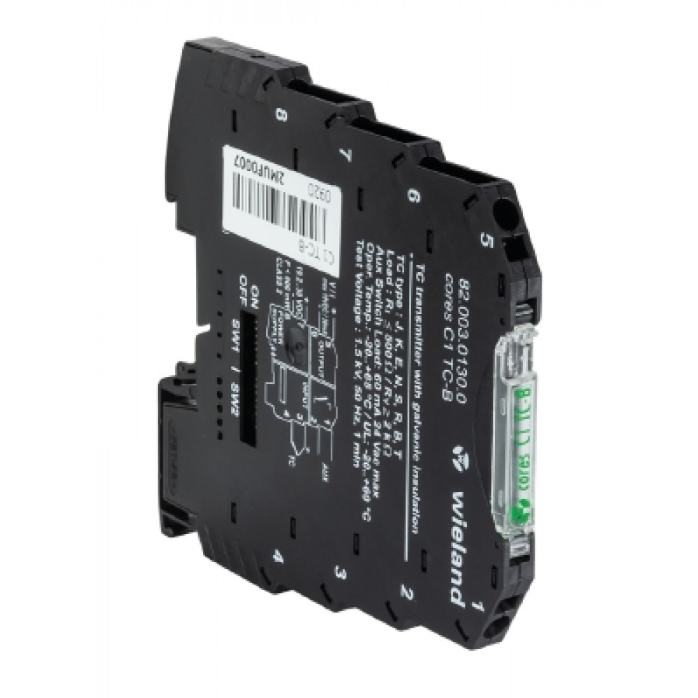Адаптер термопары cores C1 TC-B, Разделительный усилитель с гальванической развязкой трех цепей, входной диапазон (регулируемый): типы термопары: J, K, E, N, S, R, B, T; выходной диапазон (регулируемый): 0/1 ... 5 V DC или 0 ... 10 V DC; 0/4 ... 20 mA DC или 20 ... 4/0 mA DC цифровой пре