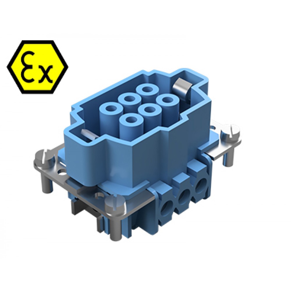 Розеточная контактная вставка взрывозащищенного разъема REVOS Ex, Size 6, винтовая фиксация, с защитой провода, 6 полюсов + РЕ, 90 V, до 16 A, материал контактов: медный сплав, тип покрытия контактов: олово