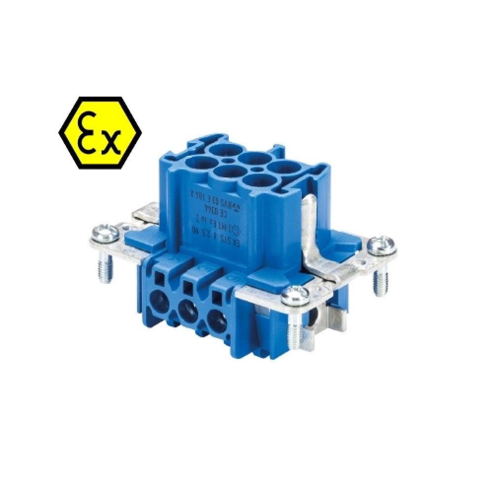 Вилочная контактная вставка EX STS 6 2,5 09IA AU, Вилочная контактная вставка взрывозащищенного разъема REVOS Ex, Size 6, винтовая фиксация, с защитой провода, 6 полюсов + РЕ, 90 V, до 16 A, тип покрытия контактов: золото