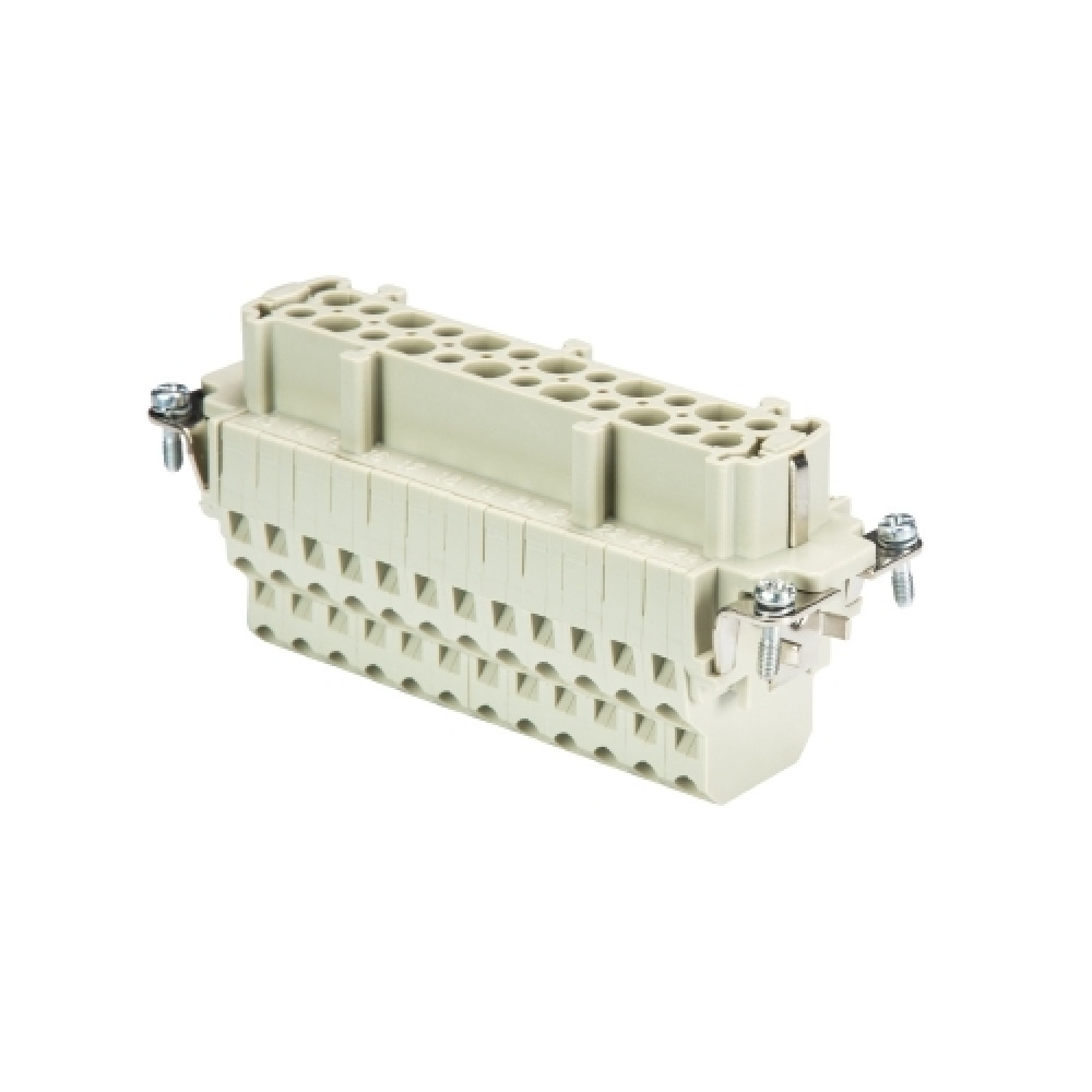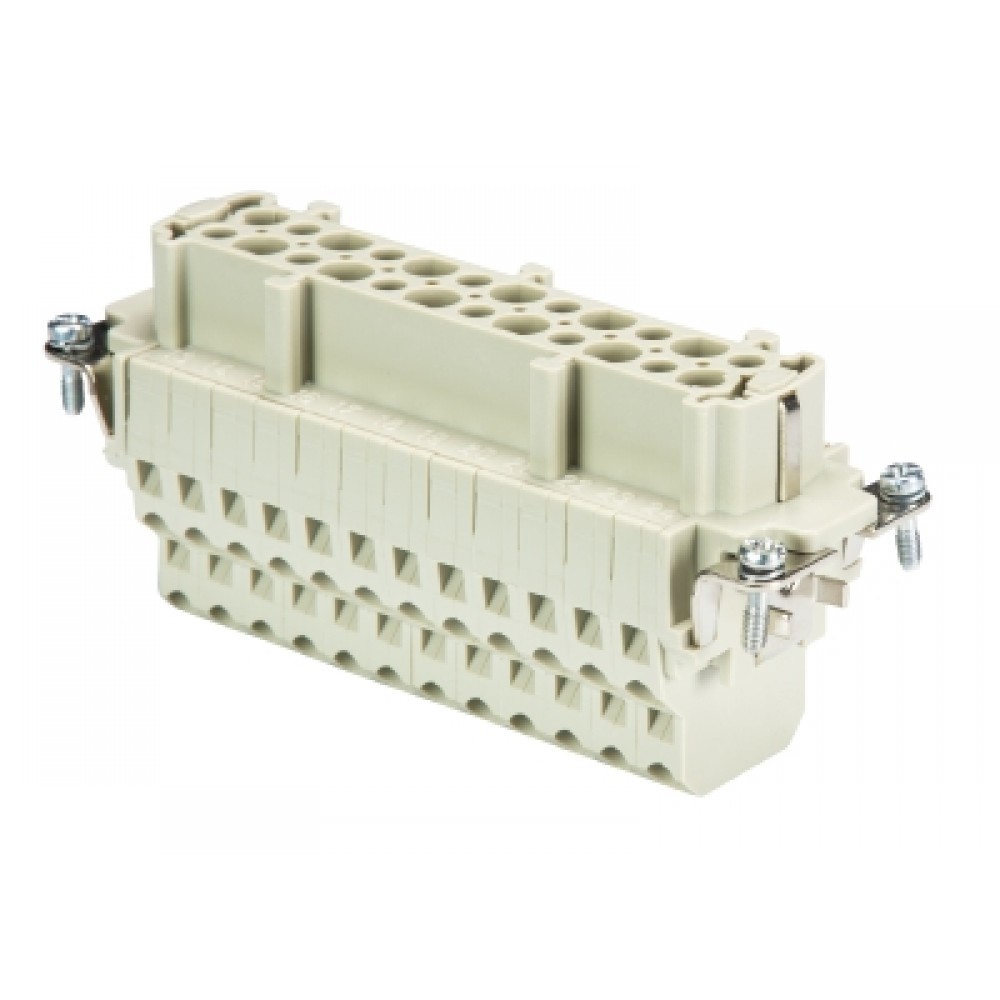 Розеточная контактная вставка, двойная пружинная фиксация, 24 полюса + PE, типоразмер 24B, 500V, 16A, сечение обслуживаемых проводников 0,14-2,5 мм кв, тип покрытия контактов: серебро,