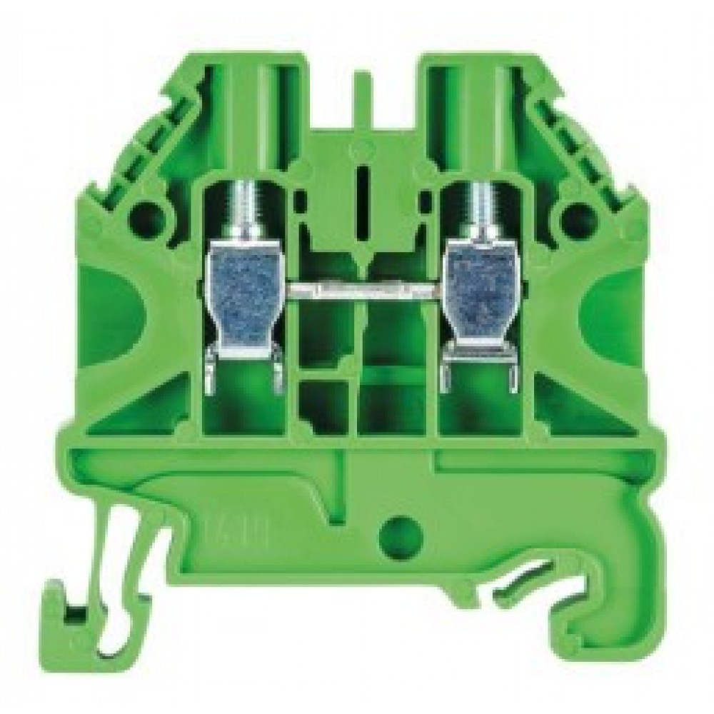 Проходная клемма, тип фиксации провода: винтовой, номинальное сечение: 4 мм кв., 32A, 800V, ширина: 6,2 мм, цвет: зеленый, тип монтажа: DIN35