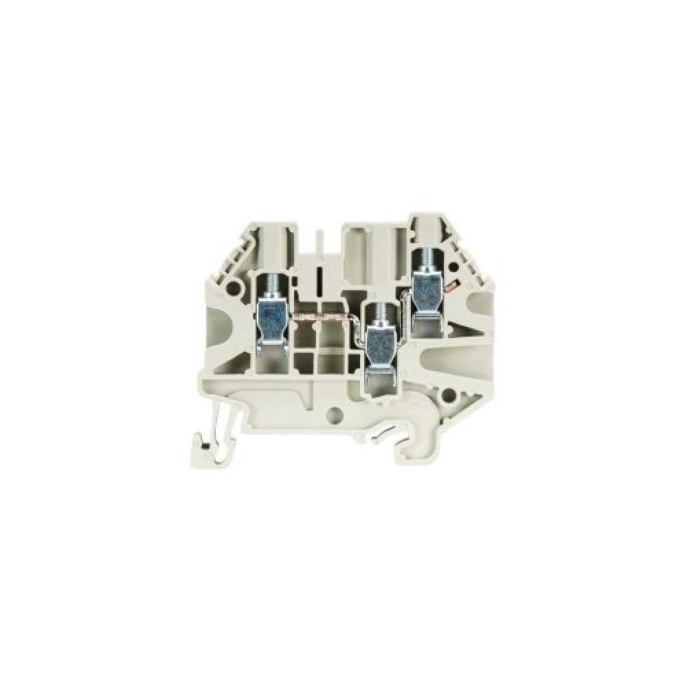 Проходная клемма, 3 точки подключения, тип фиксации провода: винтовой, номинальное сечение: 4 мм кв., 32A, 1000V, ширина: 6 мм, цвет: серый, тип монтажа: DIN35