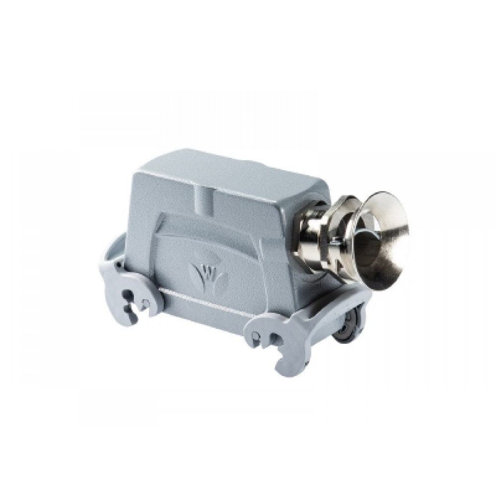 Крышка разъема на кабель, типоразмер 24B, высокое исполнение, без уплотнителя, 1 отверстие с резьбой для кабельных вводов M32x1,5, с боковым расположением, с двумя металлическими защелками, материал корпуса: алюминиевый сплав