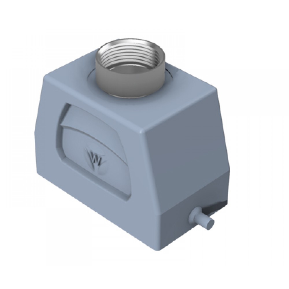Крышка разъема на кабель, типоразмер 10B, без уплотнителя, 1 отверстие с резьбой для кабельных вводов M25x1,5, с резьбовым удлинителем, с верхним расположением, без защелки (упоры под одну защелку), материал корпуса: алюминиевый сплав
