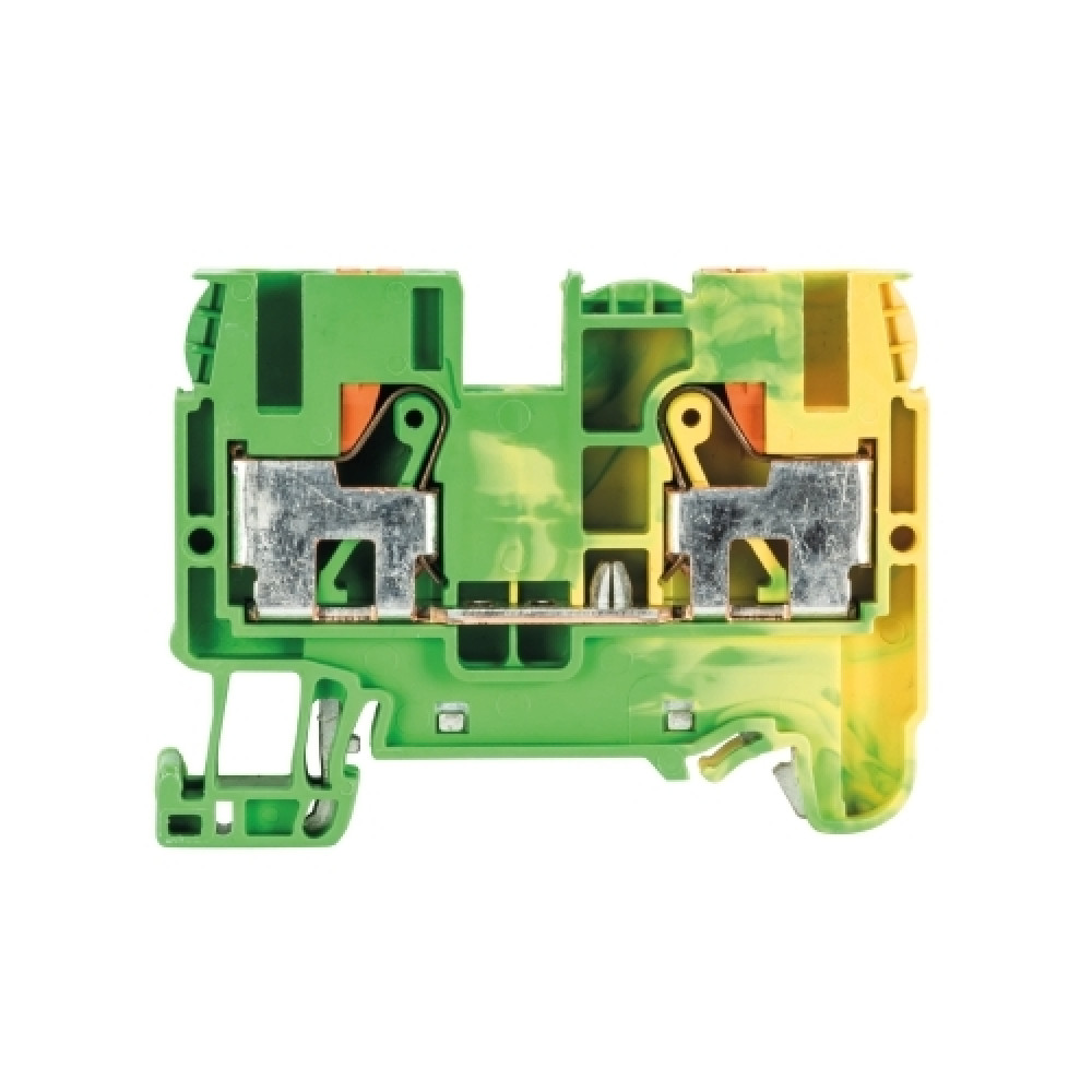 Заземляющая клемма, тип фиксации провода: Push-in, номинальное сечение: 6/10 мм кв., 1000V, ширина: 8 мм, цвет: желто-зеленый, тип монтажа: DIN35