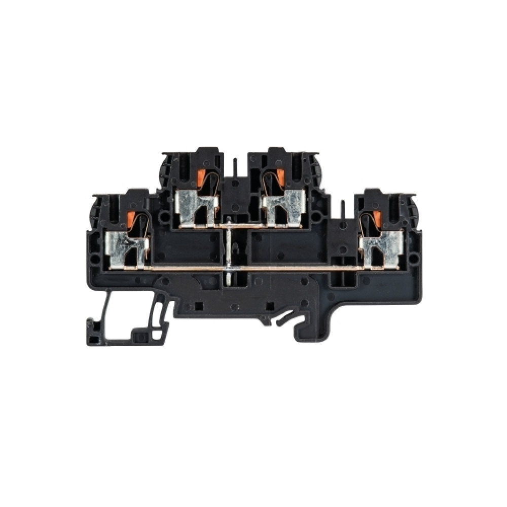 Этажная клемма, 2 этажа, межэтажная перемычка, тип фиксации провода: Push-in, номинальное сечение: 2,5/4 мм кв., 24A, 500V, ширина: 5 мм, цвет: черный, тип монтажа: DIN35
