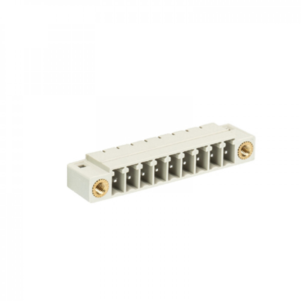 Вилочный разъем на плату 8513 S/9 WF M OB, Вилочный разъем, горизонтальный, на плату, шаг: 3.5 мм, 9 полюсов, фиксация на плате пайкой, исполнение: с монтажными фланцами, без маркировки, 250V, 8А, цвет: серый