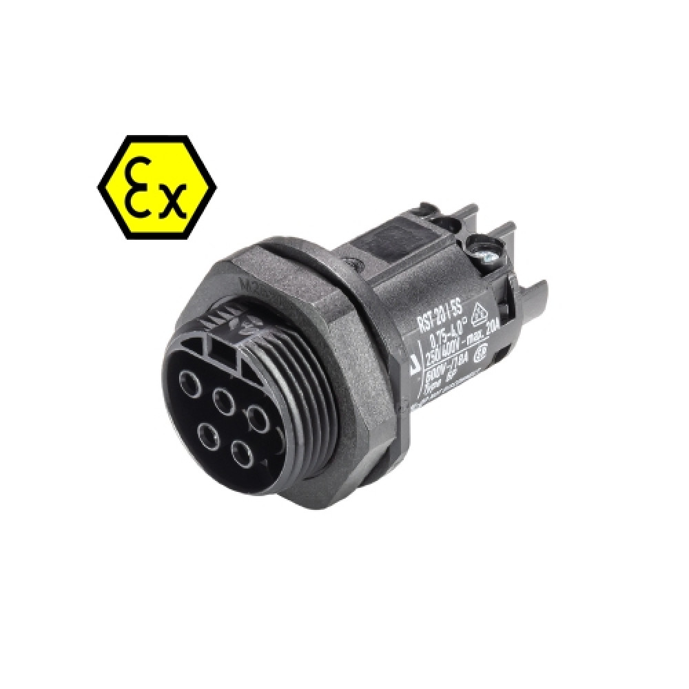 Доставка Розеточный разъем в панель EX RST20I5SXB1 M01 SW , Взрывозащищенный розеточный разъем в панель, М25, IP68(69k), 5 полюсов, винтовая фиксация провода, номинальные характеристики: 250/400V, 20A, цвет: черный, серия RST Ex
