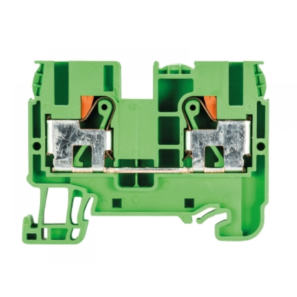 Проходная клемма, тип фиксации провода: Push-in, номинальное сечение: 6/10 мм кв., 57A, 1000V, ширина: 8 мм, цвет: зеленый, тип монтажа: DIN35