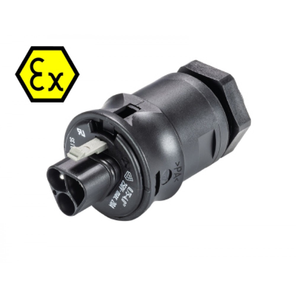 Доставка Разъем RST20I3FXS2 M00V SW , Взрывозащищенный вилочный разъем в панель, М20, IP68(69k), 3 полюса, пружинная фиксация провода, номинальные характеристики: 250V+РЕ, 20A, цвет: черный, серия RST Ex