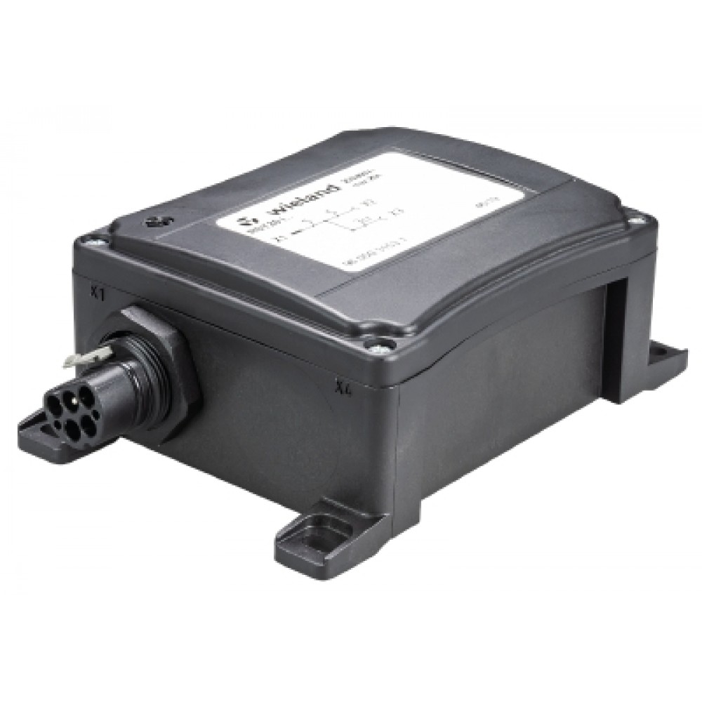 Распределительная коробка, серия RST Classic, IP68(69k), 5 полюсов, 1 вход (5 пол.) / 1 выход (5 пол.)+ 1 выход (3 пол. L1), номинальные характеристики: 250/400V, 20A, с монтажными фланцами, цвет: черный, серия RST Classic