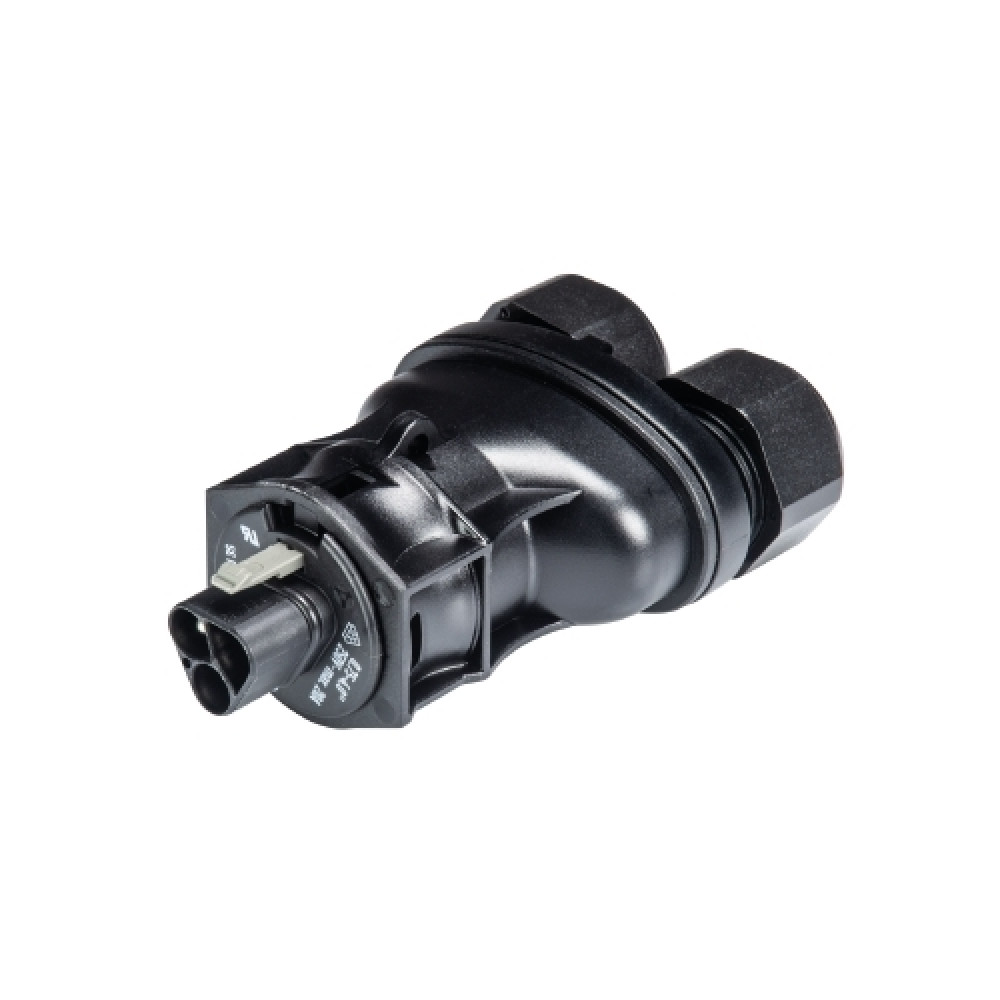 Сплиттер, вилочный разъем на кабель диаметром 6-10 мм, 3 полюса, тип фиксации провода: пружинный, номинальные характеристики: 250V, 20A, цвет корпуса: черный, цвет контактной вставки: черный, серия RST Classic