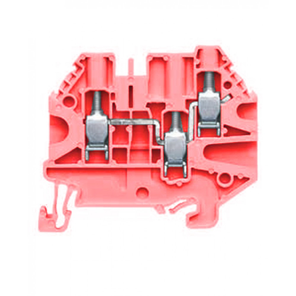 Проходная клемма, 3 точки подключения, тип фиксации провода: винтовой, номинальное сечение: 4 мм кв., 32A, 500V, ширина: 6 мм, цвет: красный, тип монтажа: DIN35