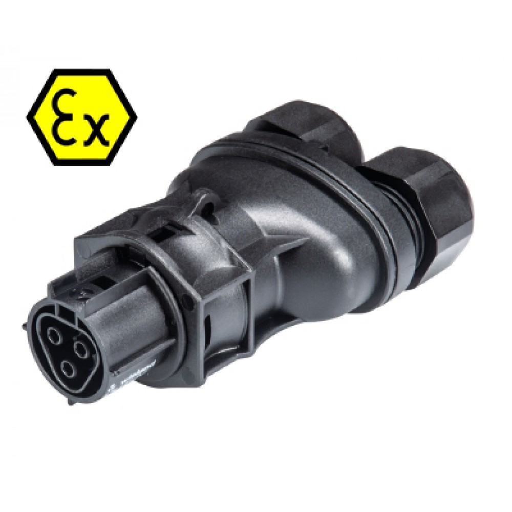 Сплиттер, взрывозащищенный розеточный разъем на кабель диам. 10-14 мм, IP68(69k), 3 полюса, винтовая фиксация провода, номинальные характеристики: 250/400V, 20A, цвет: черный, серия RST Ex