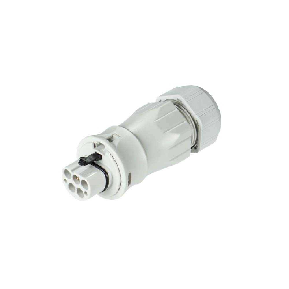 Розеточный разъем на кабель RST20I4S B1ZR3SW, Розеточный разъем на кабель диаметром 13-18 мм, 4 полюса, тип фиксации провода: винтовой, номинальные характеристики: 250/400V, 20A, цвет корпуса: черный, цвет контактной вставки: черный, серия RST Classic