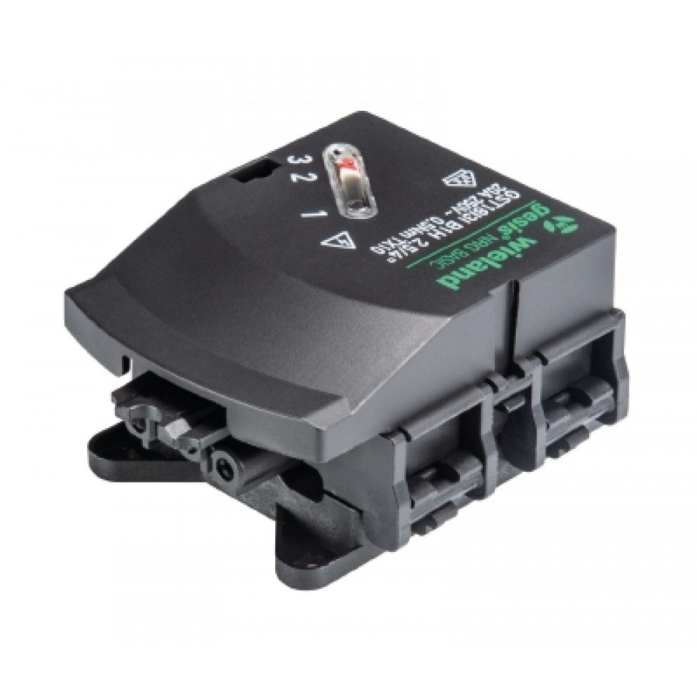 Модуль отвода питания для плоского кабеля серия gesis NRG, с выбором фазы, 3 полюса, подключение к модулю разъемом GST18i3, номинальное напряжение: 250V / 400V, номинальный ток: 20A, цвет: черный
