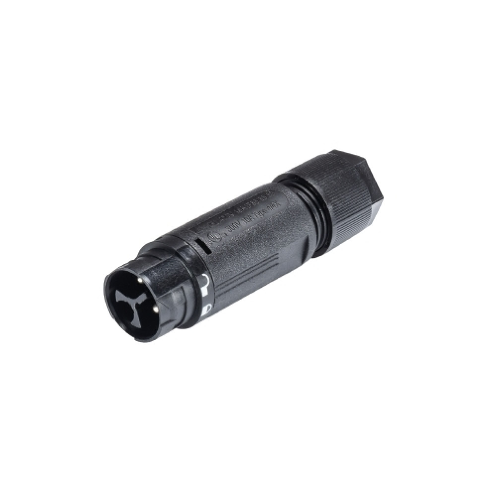 Вилочный разъем на кабель диаметром 5-9,5 мм, 3 полюса, тип фиксации провода: винтовой, номинальные характеристики: 250V, 16A, цвет корпуса: черный, цвет контактной вставки: черный, серия RST MINI