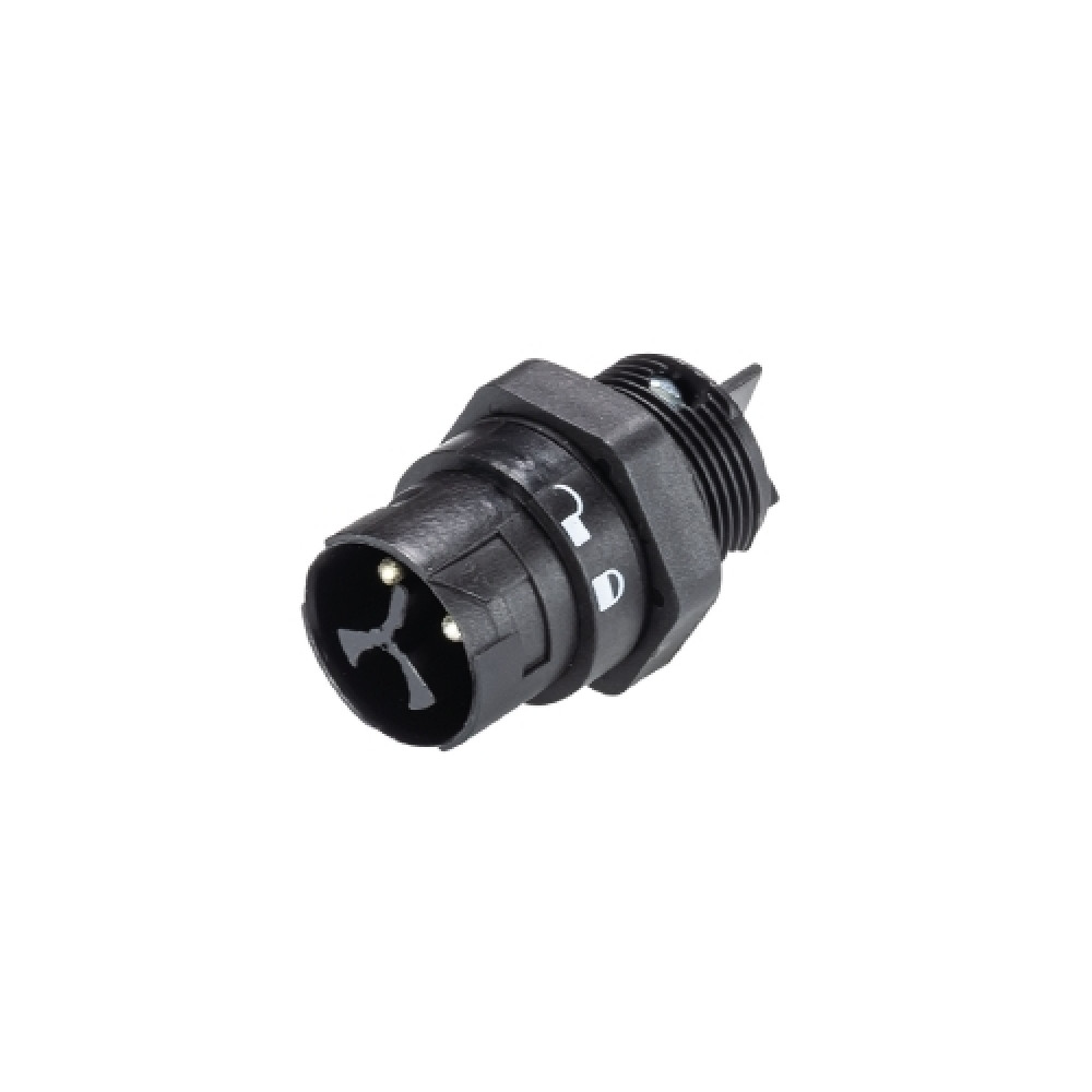 Вилочный разъем в панель, М16, 3 полюса, тип фиксации провода: винтовой, номинальные характеристики: 250V, 16A, цвет корпуса: черный, цвет контактной вставки: черный, серия RST MINI