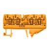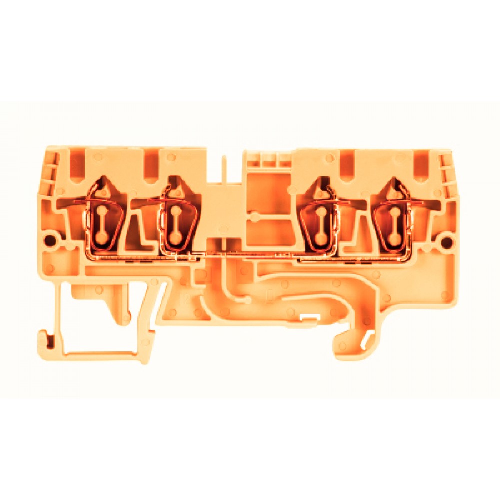 Проходная клемма, 4 точки подключения, тип фиксации провода: пружинный, номинальное сечение: 2,5 мм кв., 24A, 800V, ширина: 5 мм, цвет: оранжевый, тип монтажа: DIN35