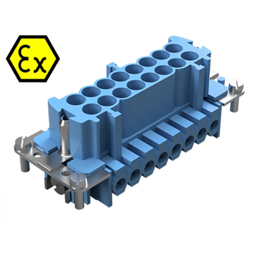 Вилочная контактная вставка взрывозащищенного разъема REVOS Ex, Size 16, винтовая фиксация, с защитой провода, 16 полюсов + РЕ, 90 V, до 16 A, тип покрытия контактов: золото