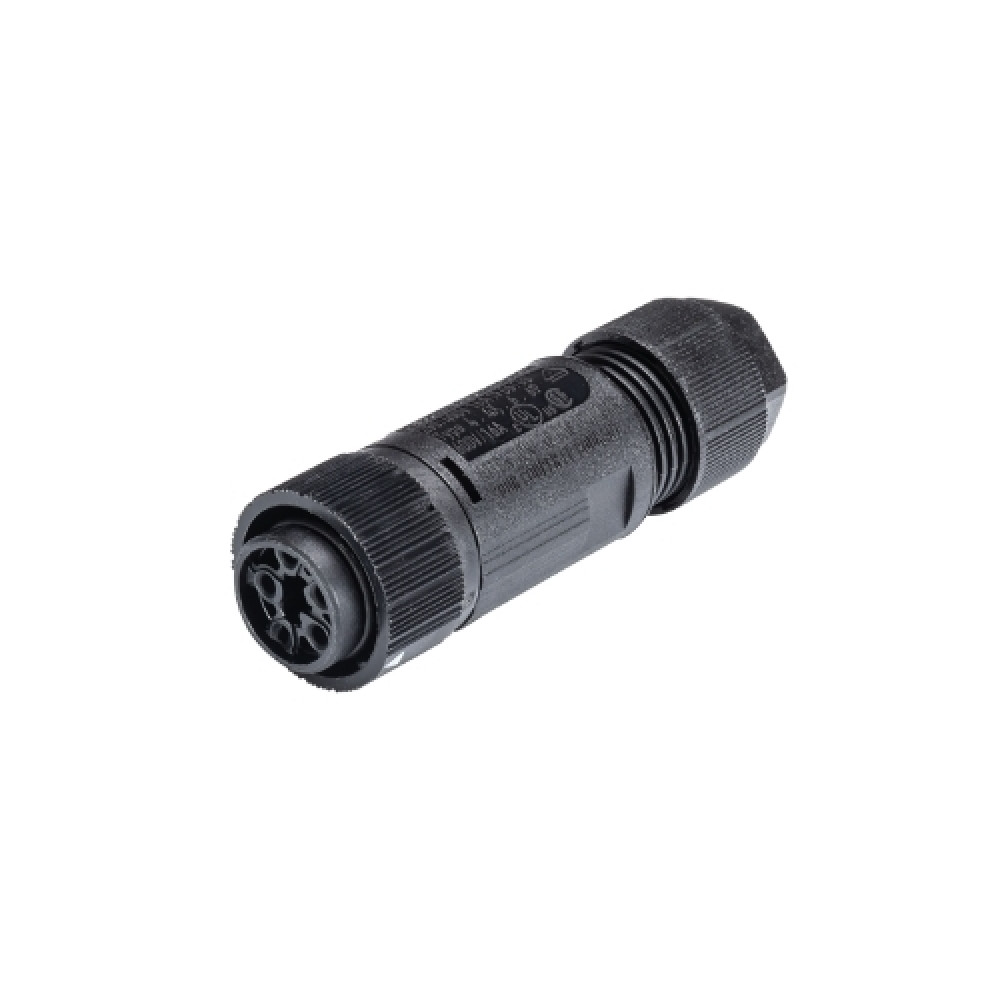 Розеточный разъем на кабель диаметром 7,1-13 мм, 4 полюса, тип фиксации провода: винтовой, номинальные характеристики: 250/400V, 16A, цвет корпуса: черный, цвет контактной вставки: черный, серия RST MINI