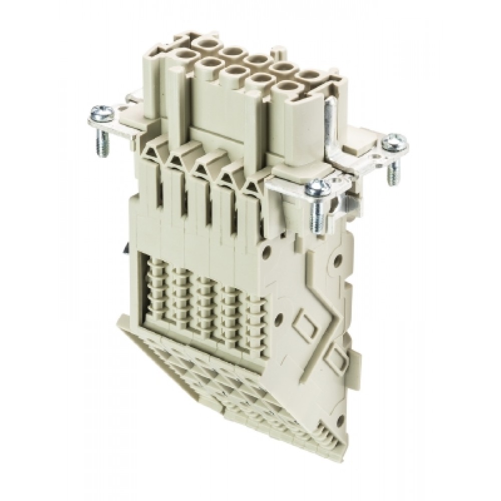 Розеточная контактная вставка, винтовая фиксация, 10 полюсов + PE, типоразмер 10B, 500V, 16A, сечение обслуживаемых проводников 0,5-4 мм кв., тип покрытия контактов: олово, заземление справа, длинное исполенение, (6 полей для маркировки)