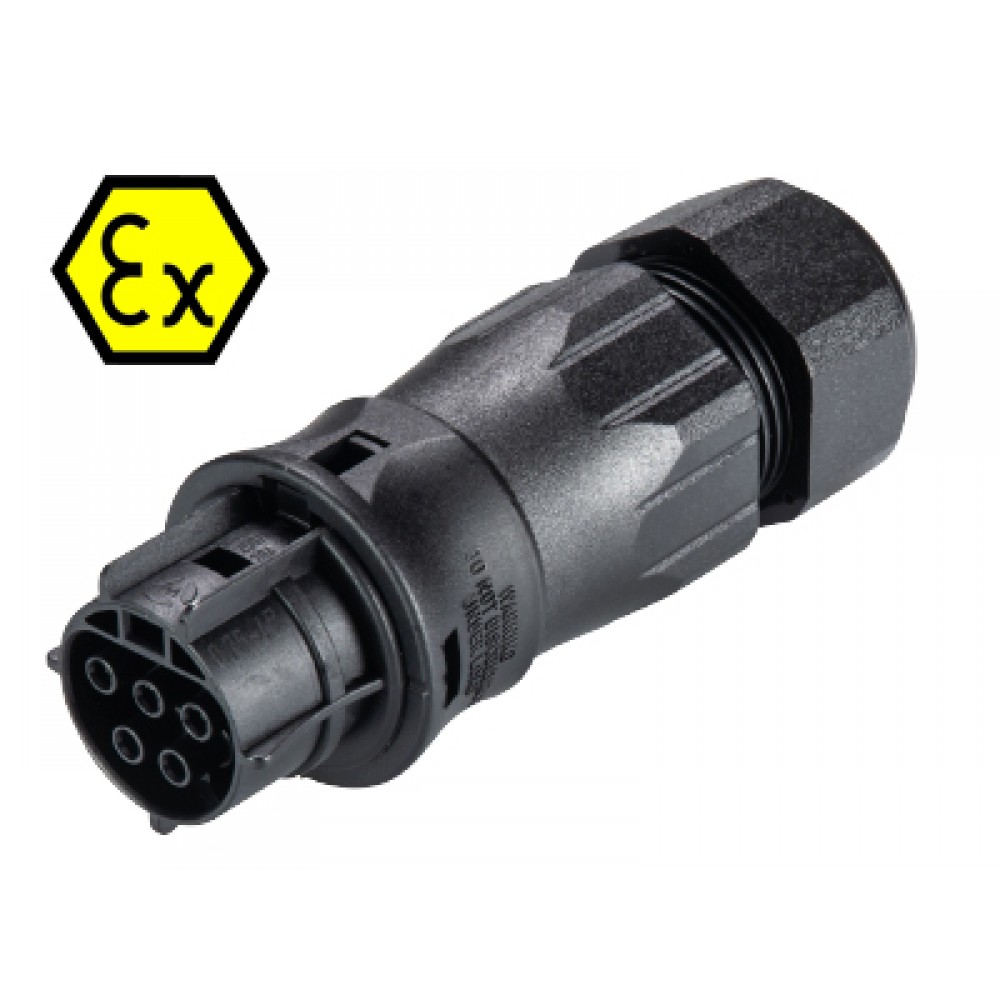 Доставка Разъем RST20I5SXB1 ZR2S BL07 , Взрывозащищенный розеточный разъем на кабель диам. 13-18 мм, IP68(69k), 5 полюсов, винтовая фиксация провода, номинальные характеристики: 250/400V+РЕ, 20A, цвет: черный, серия RST Ex