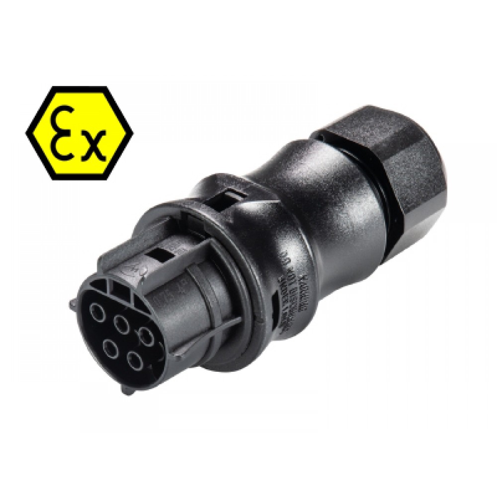 Разъем RST20I5SXB1 ZR1 SW, Взрывозащищенный розеточный разъем на кабель диам. 6-10 мм, IP68(69k), 5 полюсов, винтовая фиксация провода, номинальные характеристики: 250/400V, 20A, цвет: черный, серия RST Ex