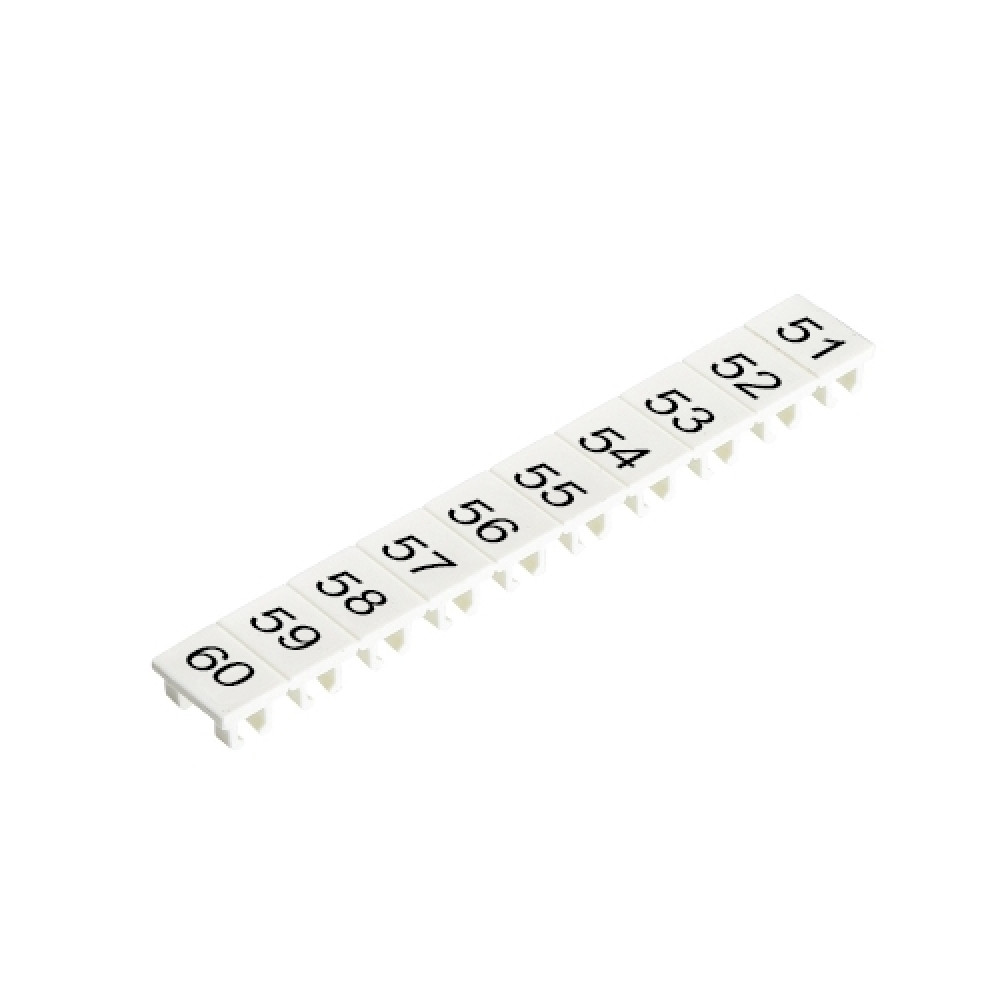 Маркировочные шильдики, для клемм сечением 2,5 мм.кв., боковая / верхняя, 10 шильдиков, нанесенные символы: 51...60, с горизонтальным расположением, размер шильдика: 4,8 x 8,3 мм, цвет: белый
