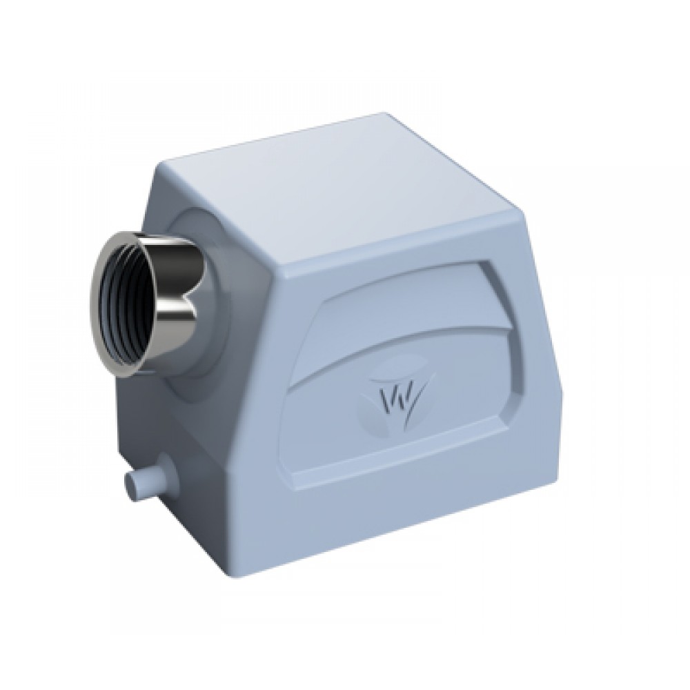Крышка разъема 70.350.0635.2, Крышка разъема на кабель, типоразмер 6B, без уплотнителя, 1 отверстие с резьбой для кабельных вводов M20x1,5, с резьбовым удлинителем, с боковым расположением, без защелки (упоры под одну защелку), материал корпуса: алюминиевый сплав