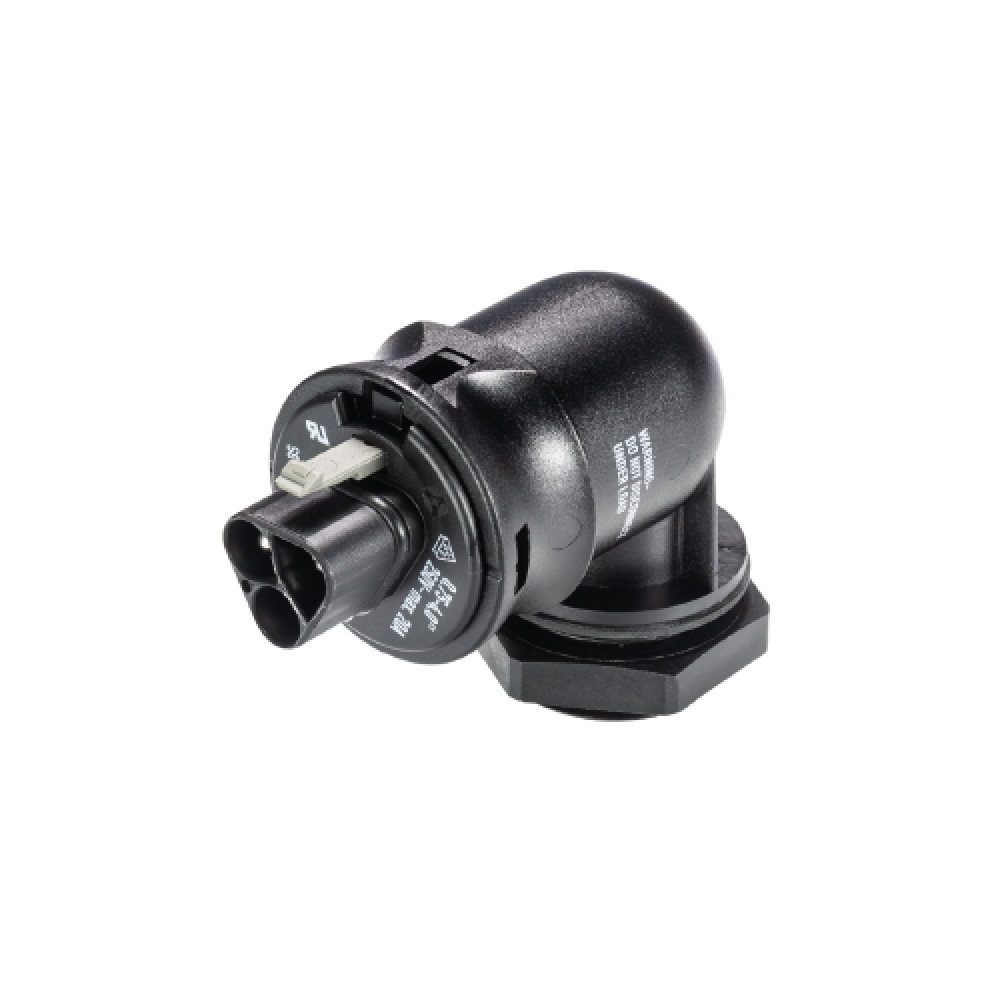 Вилочный разъем в панель, М25, 3 полюса, угловой 90 гр., тип фиксации провода: винтовой,номинальные характеристики: 250/400V, 20A, цвет корпуса: черный, цвет контактной вставки: черный, серия RST Classic