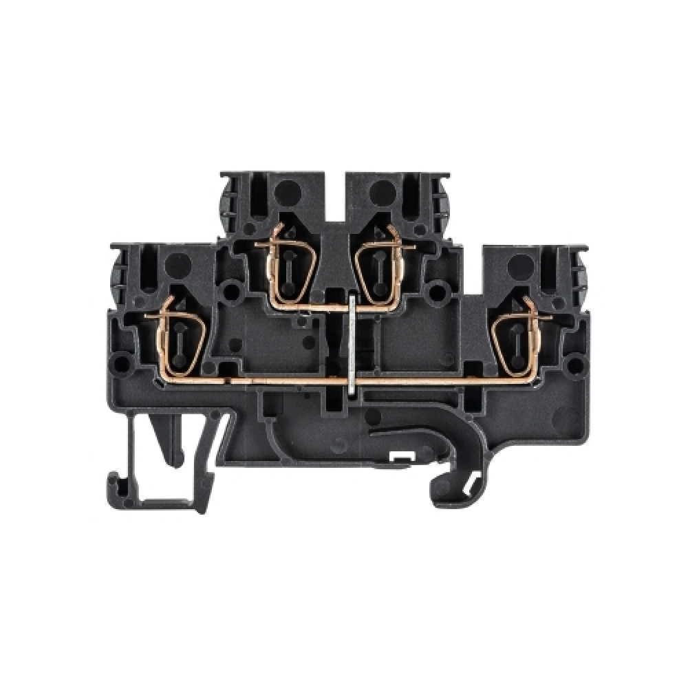 Этажная клемма, 2 этажа, тип фиксации провода: пружинный, номинальное сечение: 2,5 мм кв., 24A, 500V, ширина: 5 мм, цвет: черный, тип монтажа: DIN35