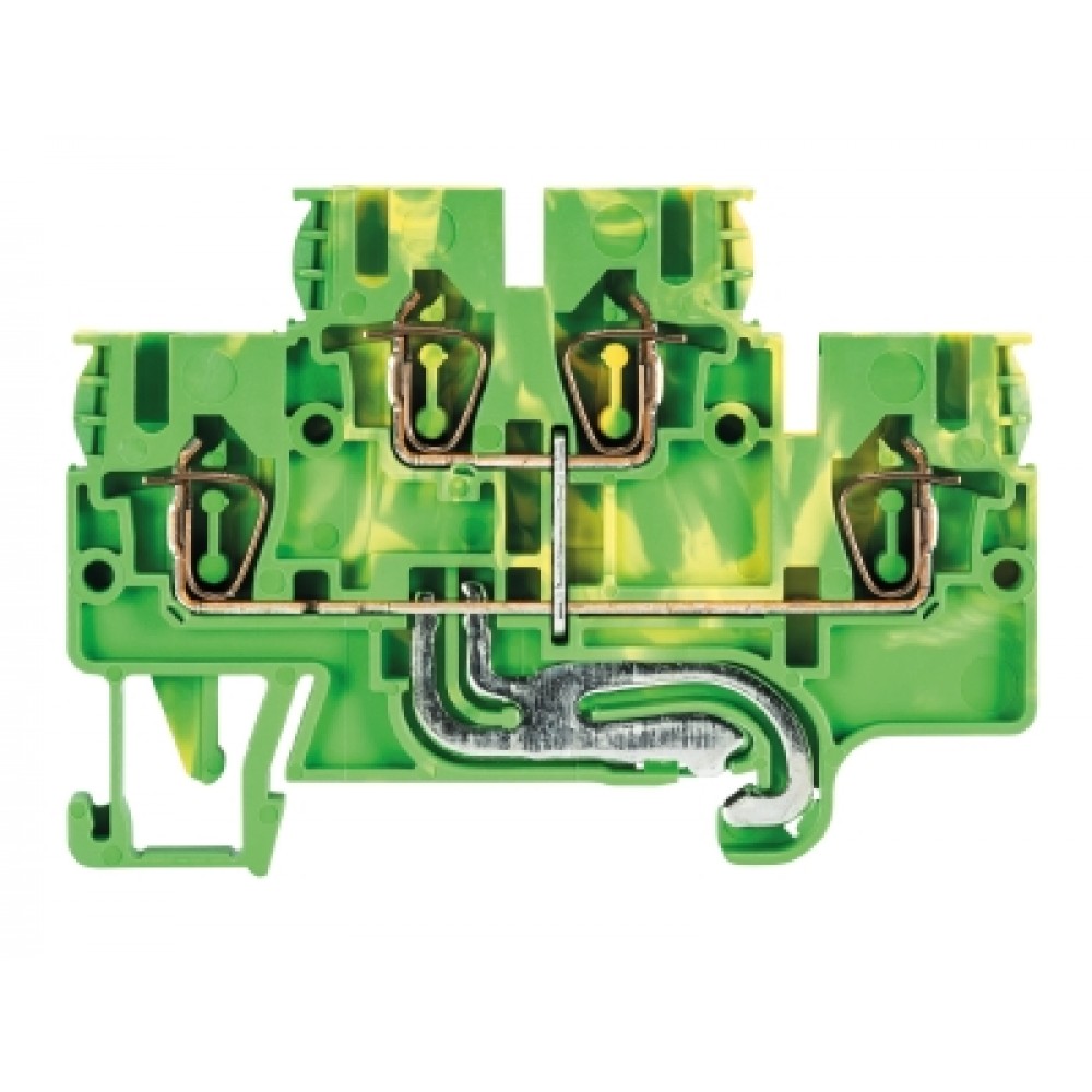 Заземляющая этажная клемма, 2 этажа, тип фиксации провода: пружинный, номинальное сечение: 2,5 мм кв., ширина: 5 мм, цвет: желто-зеленый, тип монтажа: DIN35