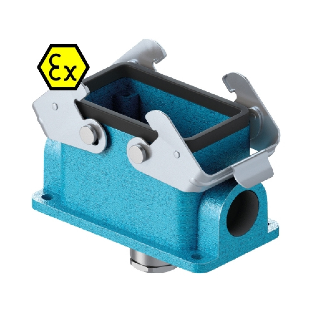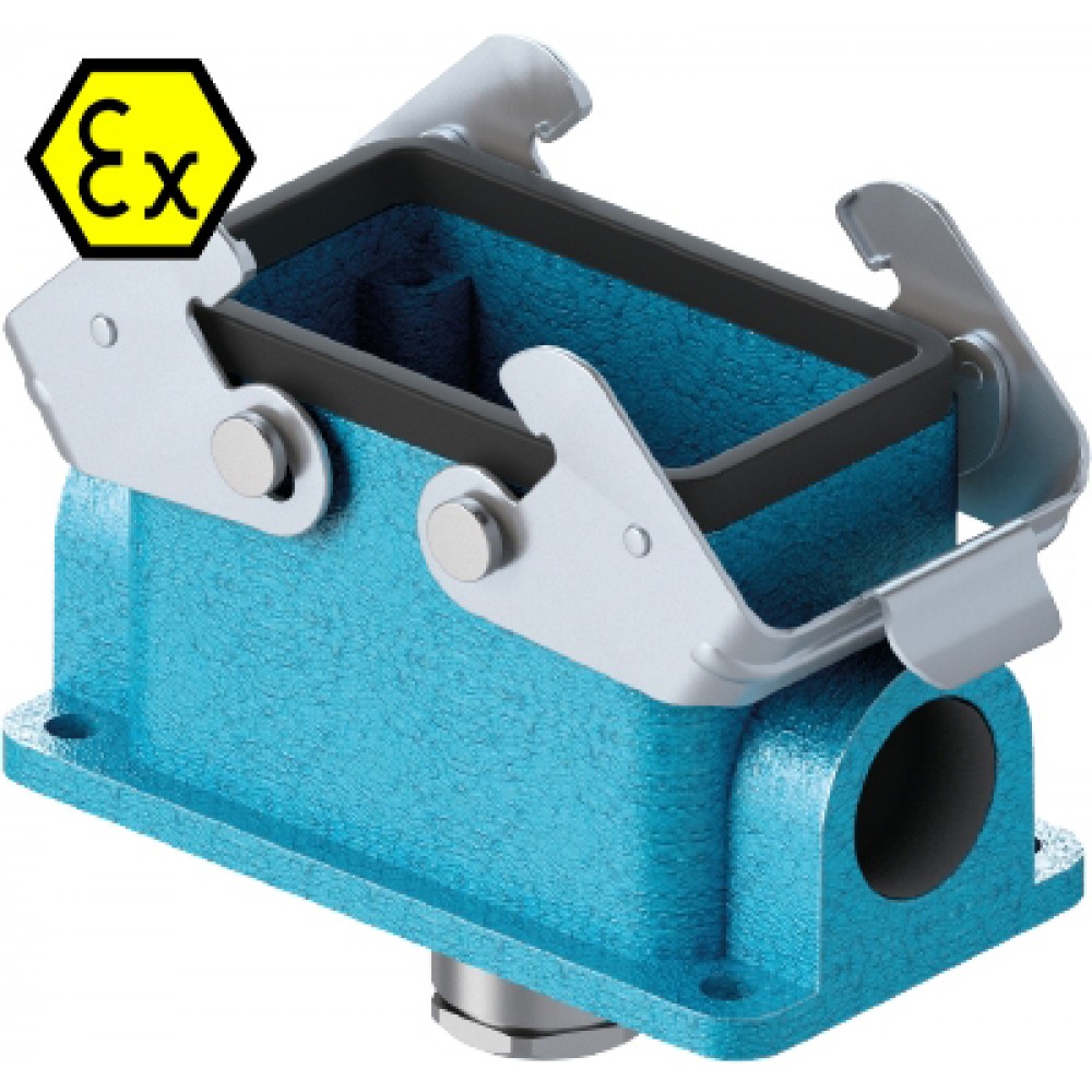 Закрытое основание разъема EX EX GUT GD10 M20 09IA Z0, Основание разъема на панель, закрытое, типоразмер 10B, взрывозащита, с уплотнителем, 1 кабельный ввод M20x1,5, IP54, с нижним расположением, с двумя защелками, без защитной крышки, материал корпуса: цинковый сплав