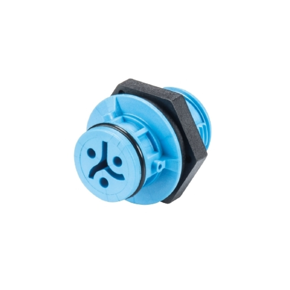 Розеточный разъем в панель RST08i3 S 11 M02H BL, Розеточный разъем в панель, М14, 3 полюса, с продольным уплотнением, тип фиксации провода: винтовой, номинальные характеристики: 250/400V, 8A, цвет корпуса: черный, цвет контактной вставки: синий, серия RST MICRO