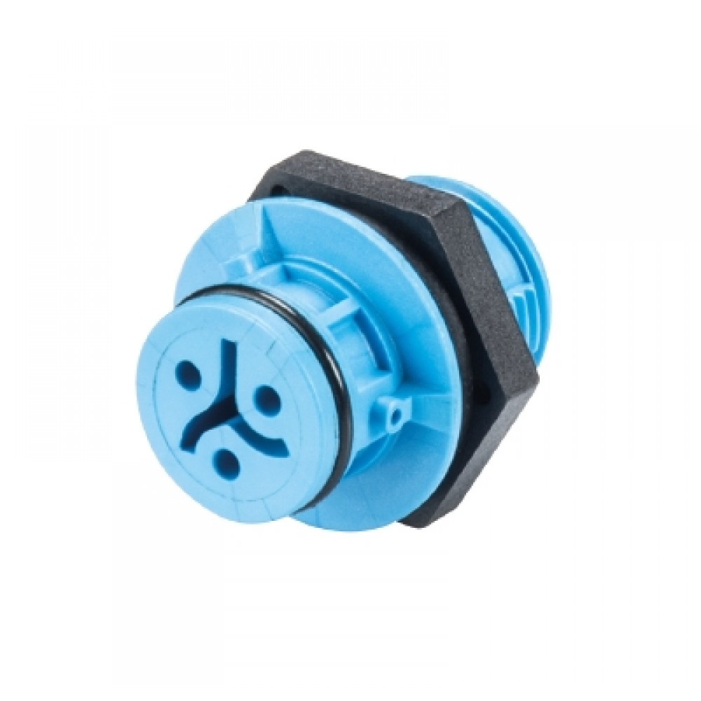 Розеточный разъем в панель М14, IP68(69k), 3 полюса, с продольным уплотнением, цвет: синий, номинальные характеристики: 250V/400V 8A, серия gesis RST MICRO