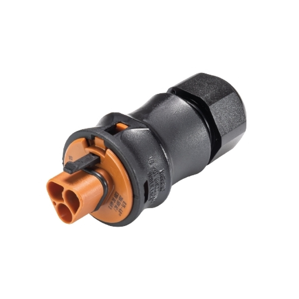 Вилочный разъем на кабель AS-I профиль, 2 полюса, тип фиксации провода: винтовой,номинальные характеристики: ~50/120V, 20A, цвет корпуса: черный, цвет контактной вставки: коричневый, серия RST Classic