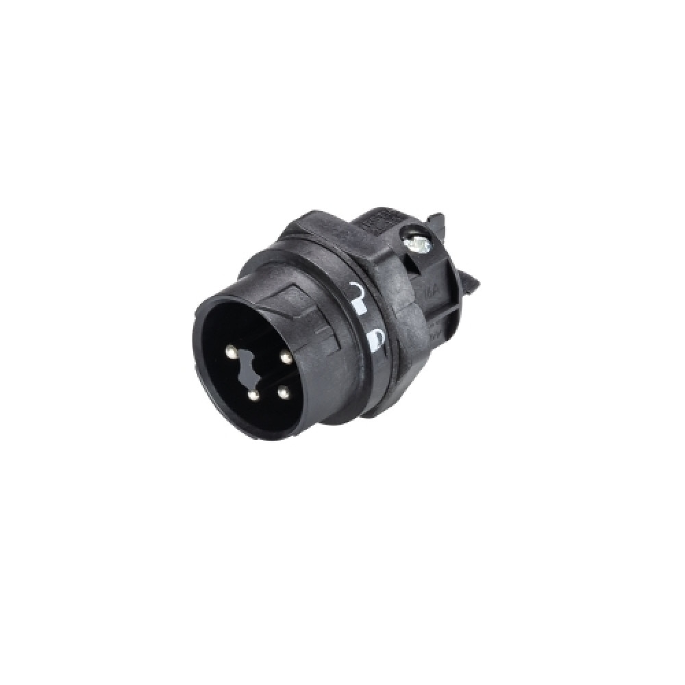 Вилочный разъем в панель RST16I5/4S S1 M03 SW, Вилочный разъем в панель, М20, 4 полюсов, тип фиксации провода: винтовой, номинальные характеристики: 250/400V, 16A, цвет корпуса: черный, цвет контактной вставки: черный, серия RST MINI