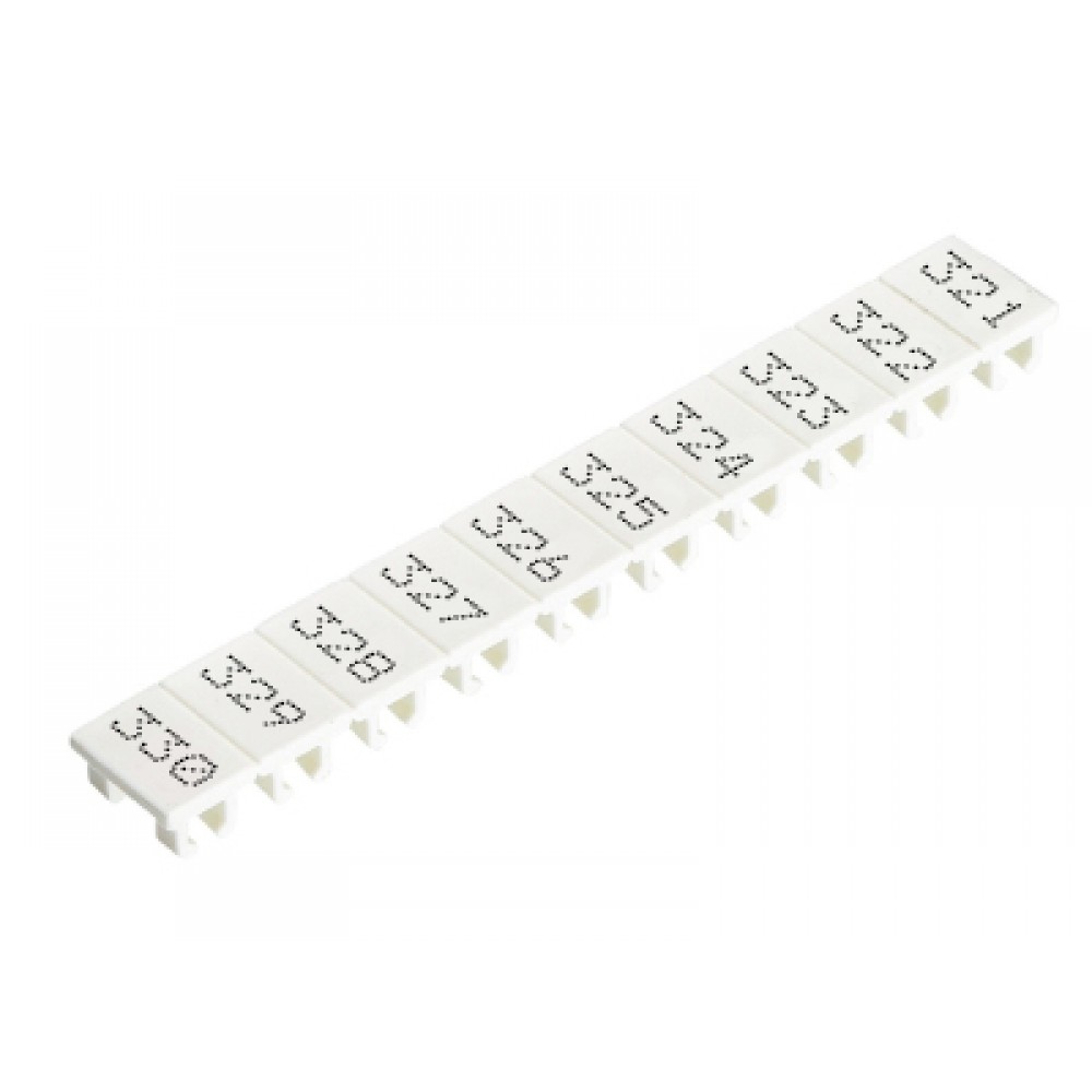 Маркировочные шильдики, для клемм сечением 6 мм.кв., боковая / верхняя, 10 шильдиков, нанесенные символы: 321...330, с горизонтальным расположением, размер шильдика: 5,75 x 8,3 мм, цвет: белый