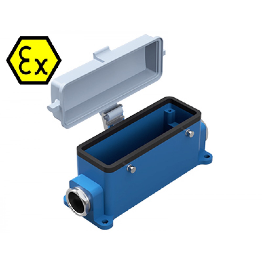 Доставка Закрытое основание разъема EX 70.340.2436.0 , Основание разъема на панель, закрытое, типоразмер 24B, взрывозащищита, с уплотнителем, 2 кабельных ввода M25x1,5, IP54, без защелок (упоры для двух защелок), с защитной крышкой, материал корпуса: цинковый сплав