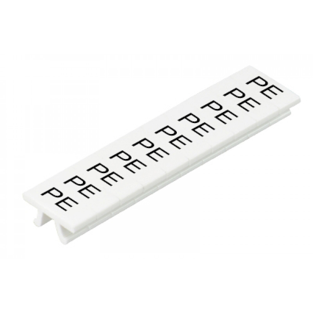 Маркировка для клемм (полоска) M1.008.0104.6, Маркировочные шильдики, для клемм сечением 1,5 мм.кв., WKF 1.5, верхняя, 10 шильдиков, нанесенные символы: PE, с горизонтальным расположением, размер шильдика: 4 x 10,5 мм, цвет: белый